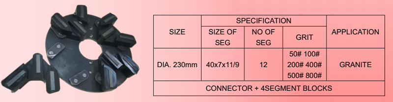 Aplicación: Para utilizar en el pulido grueso de losas de granito en máquinas pulidoras automáticas.